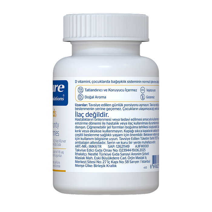 İçeriğindeki D vitamini, çocuklarda bağışıklık sisteminin normal işlevine katkıda bulunur.